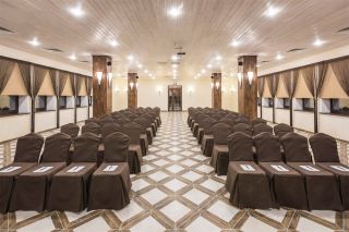 На территории находятся ресторан, 9 банкетных залов для проведения праздников и 2 готовые площадки для выездной регистрации. Эти площадки также отлично подходят для проведения деловых мероприятий, конференций, семинаров, тимбилдингов. Залы вмещают до 1000 человек, оснащены кондиционерами и оборудованы всей необходимой мультимедийной техникой.
